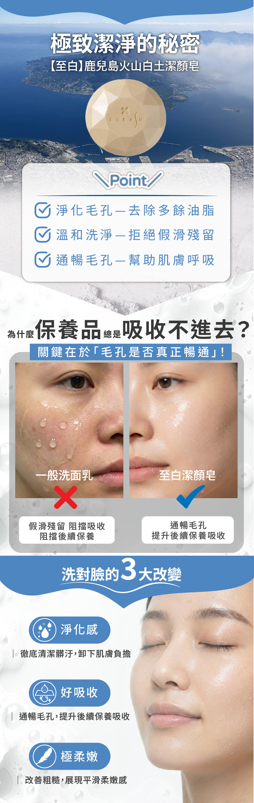 誕生於日本鹿兒島的一片由火山孕育的土地。 這裡的「吉田白砂(Yoshida Shirasu)」是歷經數十萬年形成的天然白土, 純淨、細緻,富含自然礦物質, 也是唯一被登錄於 國際化粧品原料辭典(ICID) 的火山白土成分。